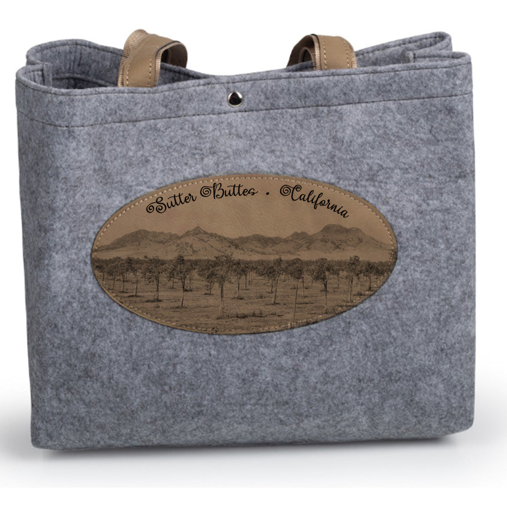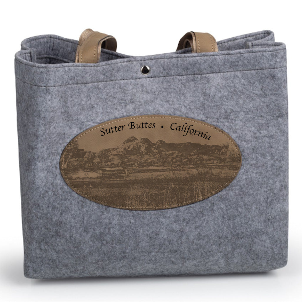 The Flannel and leather-like travel bag is a great size when you are looking to travel light and stylish! At 11" x 11.3" this bag will carry your essentials for your travel in your own unique way. Engraved with a photo of the Sutter Buttes, its a nice gift or a way to take along a piece of home.